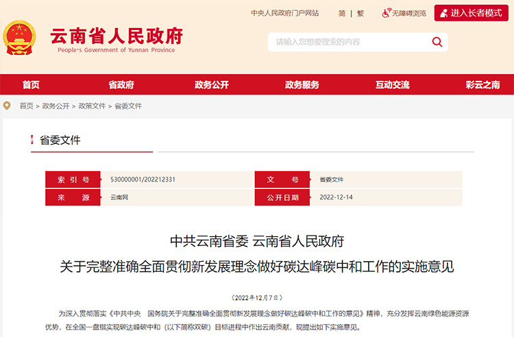 云南出臺”碳達峰、碳中和“工作實施意見 加快形成綠色低碳高質量發展