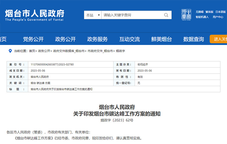 推動智能低碳城市建設 山東煙臺發布《煙臺市碳達峰工作方案》