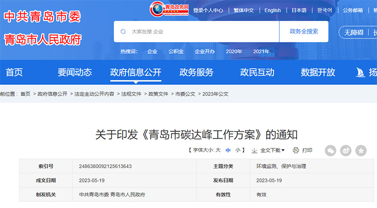 近日,青島市發布《青島市碳達峰工作方案》(以下簡稱“方案”),力爭“十四五”期間通過產業結構調整和能源結構優化,初步形成綠色低碳循環發展的經濟體系;“十五五”期間經濟社會高質量發展取得顯著成效,單位地區生產總值二氧化碳排放比20...