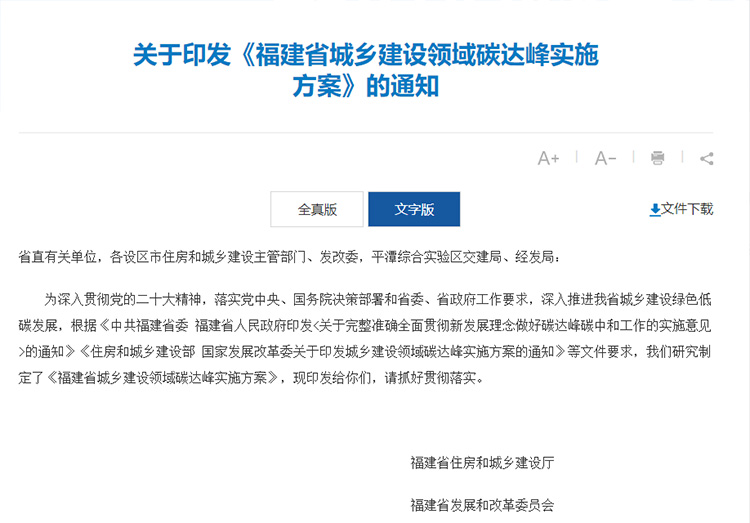 日前,福建省住建廳聯合省發改委印發《福建省城鄉建設領域碳達峰實施方案》,進一步優化城鄉建設領域用能結構,建立綠色低碳發展體系及機制,提升建筑品質及質量,大幅改善人居環境,進一步扭轉“大量建設、大量消耗、大量排放”,建設綠色低碳城...