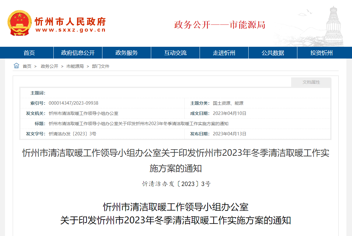 近日,山西省忻州市發布《忻州市2023年冬季清潔取暖工作實施方案》(以下簡稱“方案”),統籌推進全市清潔取暖改造工作,因地制宜實施清潔取暖改造,為全面完成地區清潔取暖改造年度任務制定了工作方向,力爭2023年采暖季前達成年度改造...