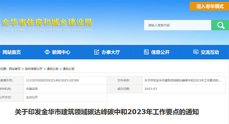 金華市發布2023年建筑領域碳達峰工作通知 加大建筑可再生能源應用