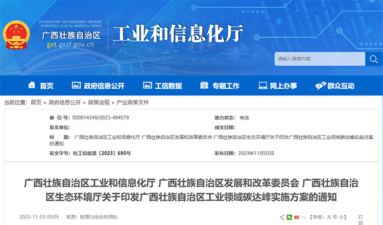 近日,廣西自治區發布《廣西壯族自治區工業領域碳達峰實施方案》(以下簡稱“方案”), 以實施重點行業達峰行動為抓手,加快廣西制造業綠色低碳轉型和高質量發展,推進地區資源能源高效利用,著力構建綠色制造體系,構建以高效、循環、低碳為特...