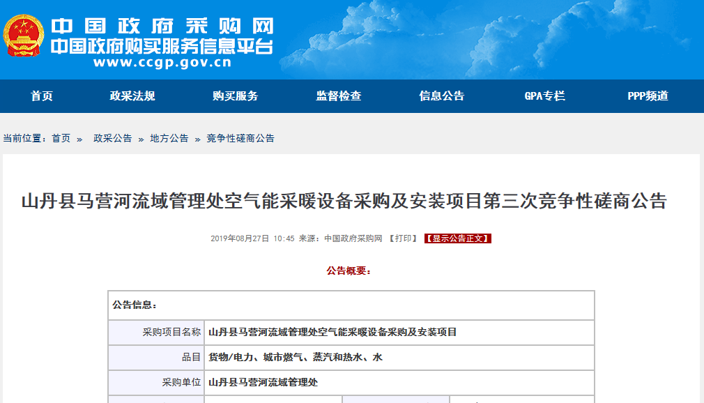 【磋商】山丹縣馬營河流域管理處空氣能采暖設備采購安裝項目,清潔取暖刻不容緩