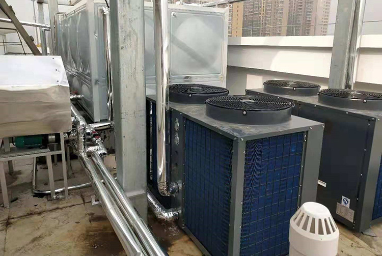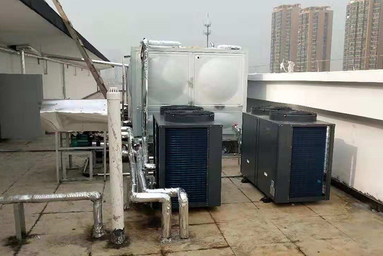 以江蘇宿遷某中學(xué)為例,本項(xiàng)目是校區(qū)宿舍熱水項(xiàng)目,按學(xué)校要求,每一個(gè)宿舍都要滿足充足的熱水供應(yīng)。經(jīng)過(guò)前期的考察,正旭熱泵為該校宿舍樓配置了4臺(tái)10P超低溫空氣源熱泵熱水機(jī)組,能夠輕松滿足學(xué)生每日正常用水量。