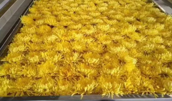 菊花烘干項目為例,新鮮菊花含水量高,花瓣部分含水量相對較少,組織較嫩,容易干燥,花頭部分含水量大,可達80%以上,所以菊花是一種含水量不均勻的物料。干菊花大多用于泡茶用,味濃香甜,去膩消食,因此市場上對于菊花的色香形味要求很高。為此正旭團隊經過實地考察之后,最終決定投入15臺