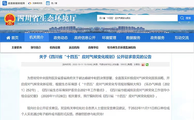 為貫徹落實黨中央國務(wù)院以及省委政府關(guān)于碳達峰碳中和的重大戰(zhàn)略決策,落實積極應(yīng)對氣候變化國家戰(zhàn)略和國家自主貢獻目標,增強全域氣候韌性,降低氣候變化風險,四川省生態(tài)環(huán)境廳特別編制《四川省“十四五”應(yīng)對氣候變化規(guī)劃》,以下內(nèi)容簡稱《規(guī)劃》,該規(guī)劃是指導(dǎo)“十四五”乃至更長時期四川省應(yīng)對氣候變化的行動指南。