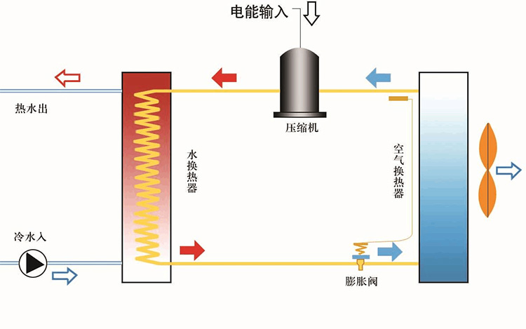 首先,在工作原理方面,空氣源熱泵和空調的制冷系統原理相同,都是采用“逆卡諾循環”工作原理,以壓縮機為動力,制冷劑為載體,將熱量進行轉移。空氣源熱泵是將空氣中的低位熱能轉換成我們能利用的高位熱能,通過壓縮機系統運轉工作,吸收空氣中熱量實現取熱。而一般的空調在制冷時,它是通過冷媒在蒸發器的物理相態變化吸收室內的熱量,再通過室外冷凝器的放熱來實現制冷的。