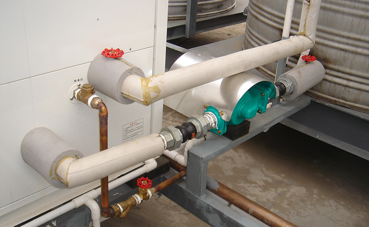 第五步,檢查冷凝器結垢情況。當冷凝器結垢嚴重,也會造成制熱效率下降、壓縮機排出的熱量得不到及時釋放,進而使機組出現高壓保護。如果水垢嚴重,大多是水質問題,建議在對冷凝器除垢后,在進冷水的位置安裝前置過濾裝置。需要說明的是,不要多次使用除垢劑,因為會導致銅制盤管穿孔;