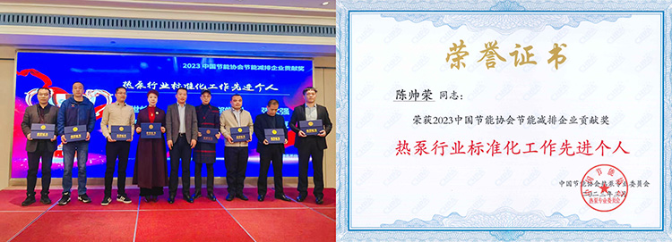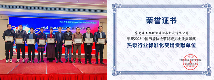 為肯定企業(yè)在行業(yè)標準化工作中發(fā)揮的積極作用,本次會議上表彰了一批熱泵標準化突出貢獻單位和先進個人,東莞市正旭新能源設(shè)備科技有限公司榮獲“2023中國節(jié)能協(xié)會節(jié)能減排企業(yè)貢獻獎暨熱泵行業(yè)標準化突出貢獻單位”,此次獲獎不僅是表彰正旭在行業(yè)標準制定上的突出貢獻,也是對正旭多年來堅持節(jié)能減排事業(yè)、用優(yōu)質(zhì)的產(chǎn)品積極響應(yīng)國家“碳達峰、碳中和”戰(zhàn)略目標的肯定。