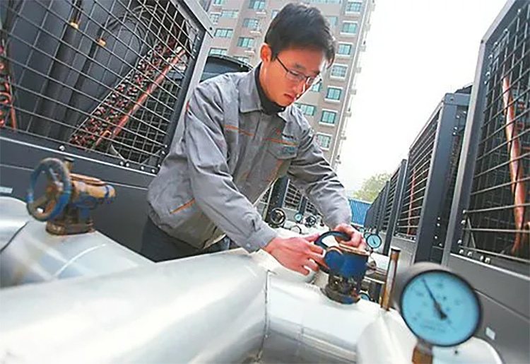 第四種情況,機組開機后水泵沒有正常運轉,這時先用手摸一下水泵是否發燙,如果發燙則是水泵故障。如果水泵正常,但出水溫度低,很可能是管道堵塞,試著清理一下管道接口處的水過濾器;如果拆下來的機組進出水口處的連接管內壁結垢嚴重,需要及時清理管道并添加除垢液及防凍液。