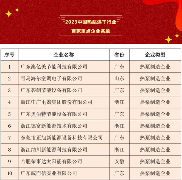 會上,由中國節(jié)能協(xié)會熱泵專業(yè)委員會支持、《熱泵》雜志承辦“2023中國熱泵烘干行業(yè)百家重點企業(yè)推選活動”,來自權(quán)威科研院所、知名院校、檢測認證機構(gòu)、標(biāo)準(zhǔn)制定組織、行業(yè)協(xié)會等部門的專家組成評審組評審,對外發(fā)布了《2023中國熱泵烘干行業(yè)百家重點企業(yè)》榜單。60家熱泵制造廠家、23家烘干系統(tǒng)集成商、17家配件配套企業(yè)上榜,正旭空氣能榜上有名。《2023中國熱泵烘干行業(yè)百家重點企業(yè)》榜單的發(fā)布,將為廣大烘干品牌商與用戶之間搭建溝通橋梁,塑造烘干產(chǎn)業(yè)企業(yè)新形象,構(gòu)建熱泵烘干品牌新秩序。