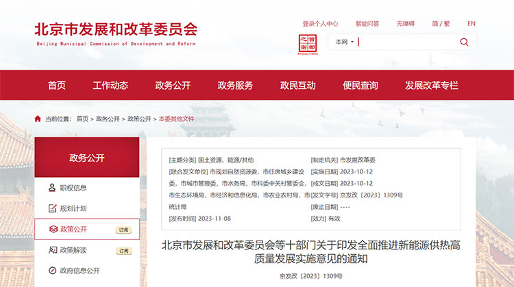 為加快能源綠色低碳轉型,進一步控制化石能源消費,提高新能源供熱利用比重,全面推動本市新能源供熱高質量發展,北京市發展和改革委員會等十部門于近日聯合印發《關于全面推進新能源供熱高質量發展的實施意見》(以下簡樂“意見”)。